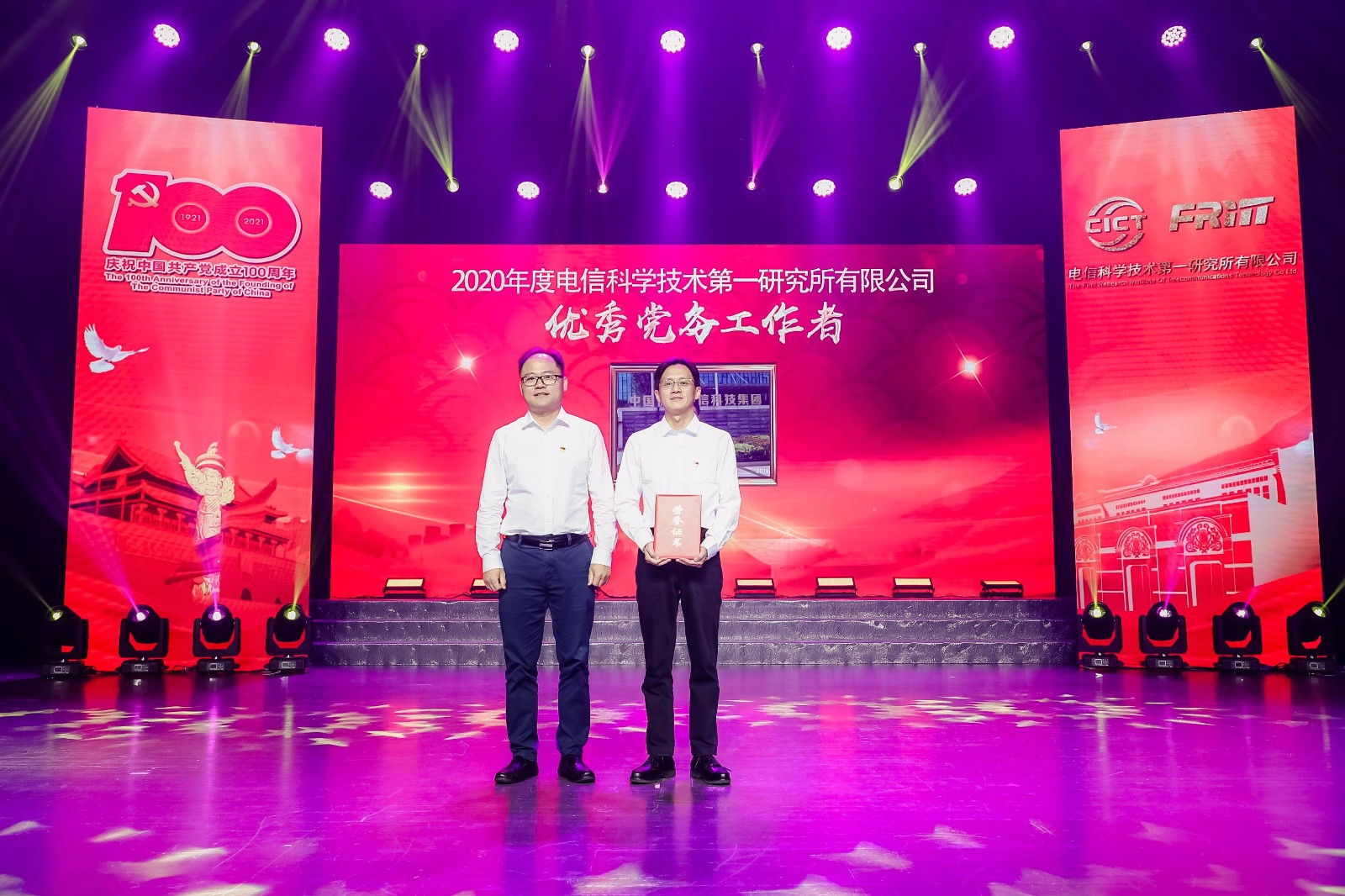 6月29日下午,电信一所隆重举行“百年党史励初心,共创时代新华章”庆祝中国共产党成立100周年大会,全所近三百名党员及职工参会。活动伊始,电信一所党委书记、副总经理蒋红梅代表做大会致辞,电信一所总经理、党委副书记邱详平宣读《关于表彰2020年度优秀共产党员、优秀党务工作者、先进党组织的决定》。蒋红梅书记、邱祥平总经理为荣获年度“两优一先”的代表颁奖荣誉证书,并为在党三十年、二十年党员代表颁发纪念奖杯。随后进行了文艺演出。