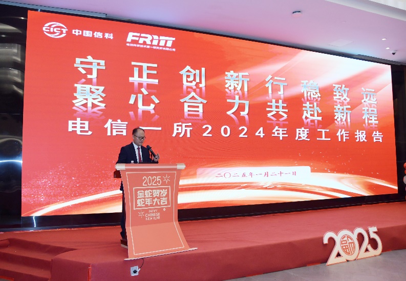 邱祥平总结回顾了全所及所本部2024年度经营情况,围绕党建引领双融双促、深化改革管理提升、为群众办实事等工作成效,以及卫星通信、专用通信、检测服务产业发展成效等展开阐述,并进行2025年度党建、改革、产业发展等部署。他指出过去的一年,电信一所积极发挥重组融合效应,加大战新产业和未来产业布局,自主产品市场拓展稳中有进,关键核心技术持续突破,高质量发展水平进一步提升。