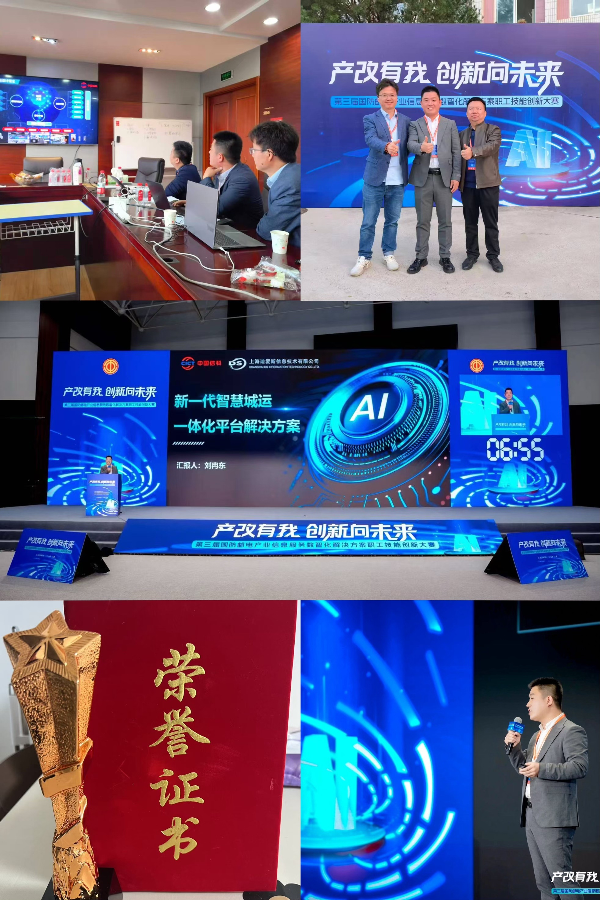 近日,由中国国防邮电工会全国委员会主办的第三届国防邮电产业信息服务数智化解决方案(“人工智能+”)职工技能创新大赛全国总决赛在山西太原落幕。电信一所(迪爱斯)参赛团队首次代表集团参与本次大赛“AI+数字政府”赛道比拼,经过两天紧张激烈的角逐,斩获总决赛三等奖佳绩。